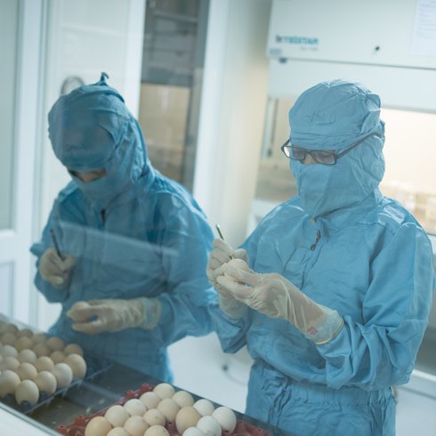 In 2009, PATH, in cooperation with WHO and the Biomedical Advanced Research and Development Authority within the US Department of Health and Human Services, launched a project to support influenza vaccine production in Vietnam and started providing technical assistance to IVAC in 2010. PATH supported IVAC as it worked to operationalize the new vaccine development facility; to populate a henhouse and raise chickens (viruses for most influenza vaccines are grown in chicken eggs and a sustainable supply is necessary for commercial-scale production); to conduct trainings on quality control and quality assurance; to develop standard operating procedures for laboratory practices; and generally respond to whatever needs IVAC had.