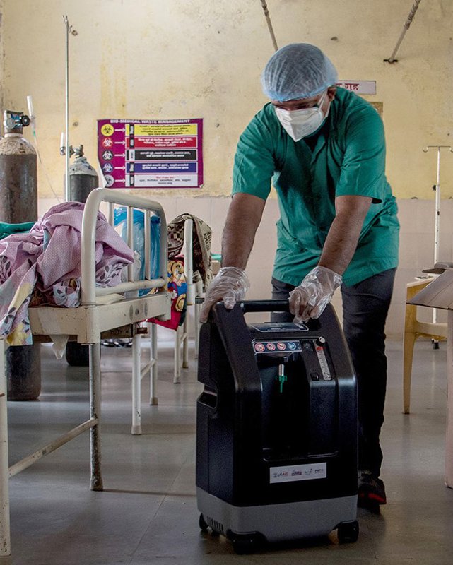 When the devastating second wave of COVID-19 swept through India in May 2021, oxygen needs skyrocketed. PATH was well positioned to respond quickly, thanks to flexible funding from the Catalyst Fund. PATH scaled our existing respiratory care work from 3 states to 15, providing more than 1,000 oxygen concentrators and technical assistance to establish more than 1,200 oxygen generation plants. PATH also supported more than 125,000 health facilities with planning, supplier sourcing, and equipment installation, and trained more than 2,000 health care workers.