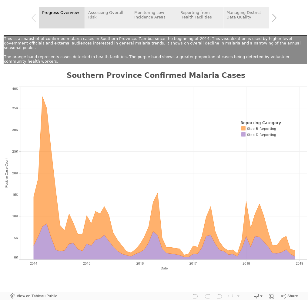 For the past decade, PATH has partnered with the Government of Zambia to control and eliminate the disease. In 2015, they gained a new ally in the fight—data. PATH teamed up with the Tableau Foundation to launch Visualize No Malaria—an initiative focused on integrating new tools and systems for data use to support Zambia’s Ministry of Health in their effort to bring the malaria incidence rate down to zero.