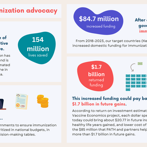 As conflict, climate change, and economic instability continue to pressure government budgets, dedicated and strategic advocacy is necessary to safeguard these achievements and ensure global health remains a priority. That’s why PATH works directly with governments and in multilateral spaces such as the World Health Assembly and G20 meetings to mobilize funding for vital global health initiatives. Drawing from PATH’s deep technical expertise, our team leverages creative, evidence-based approaches to raise awareness of global health priorities and spur action from policymakers to continue investing in essential health care services, medicines, and vaccines for everyone, everywhere.